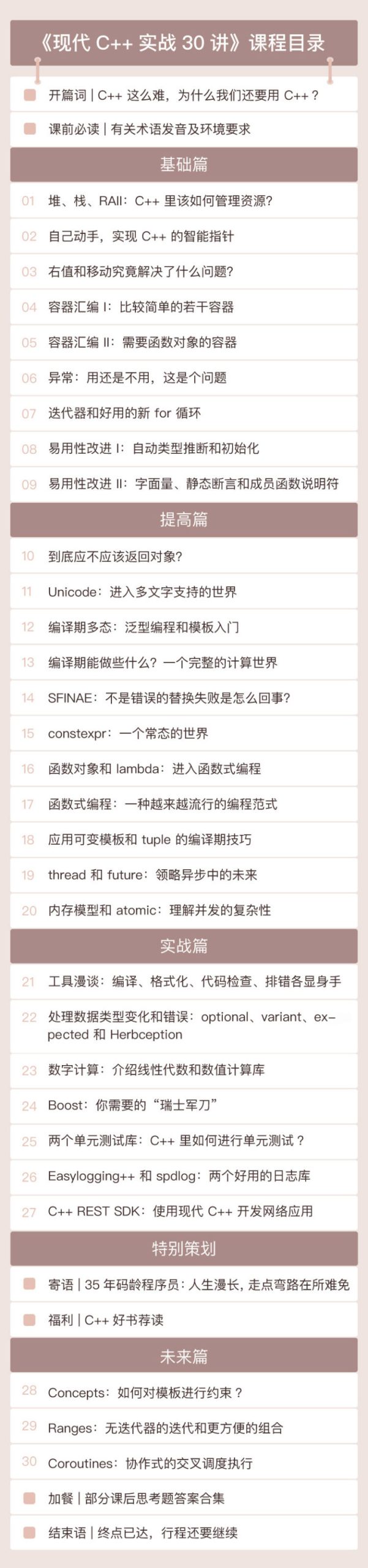 具有 1~5 年工作经验的 C++ 程序员,熟悉基本编程概念和 C++ 的基本语法。本专栏非 0 基础课程。