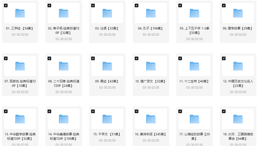 内容介绍:幼儿国学启蒙早教动画视频(三字经+弟子规+上下五千年+四大名著等等)助力孩子的启蒙教育